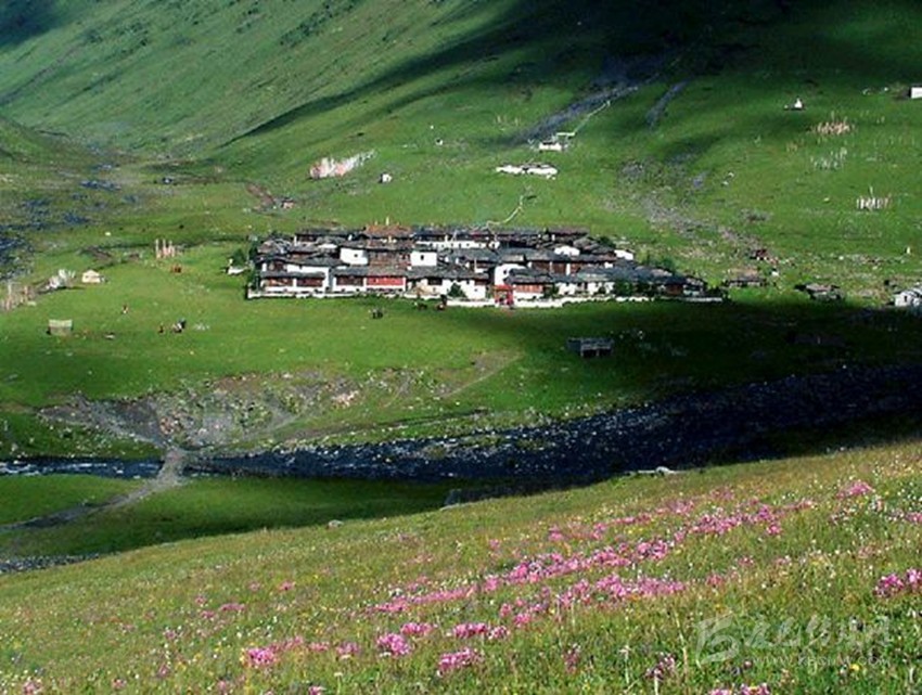 景區(qū)內(nèi)的莫斯卡溝自北而南流入磨子溝,繼而進(jìn)入革什扎河。保護(hù)區(qū)以莫斯卡溝流域范圍為主,北與錯(cuò)郎溝分水嶺為界,西以與丹東河之間的分水嶺為界;南以拉龍溝為界東則以莫斯卡溝與阿科里溝的分水嶺為界。