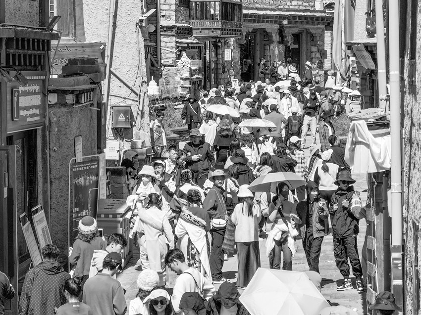 理塘仁康古街游人如織。