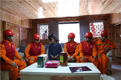 公司董事長(zhǎng)劉元生在海拔4600米的理塘-下壩輸電線路施工現(xiàn)場(chǎng)檢查建設(shè)情況。公司 圖