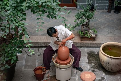 生活在云南省紅河哈尼族彝族自治州建水縣碗窯村的徐榮洪是當(dāng)?shù)匦旒腋G的第五代制陶藝人,也是非遺建水紫陶燒制技藝的傳承人。 泥料制備、拉坯造型、濕坯裝飾、雕刻填泥、高溫?zé)啤o釉磨光……要想做出精良的紫陶工藝品,每個(gè)流程都需要潛心鉆研。“制作技藝環(huán)環(huán)相扣,某一道工序出現(xiàn)紕漏,燒出來就是瑕疵品?!?徐榮洪拿起刻刀,對(duì)陶坯表面開始進(jìn)行雕刻。 今年57歲的徐榮洪小時(shí)候就跟著長(zhǎng)輩上山挖陶泥,多年來堅(jiān)持鉆研建水紫陶的制作技藝。 徐榮洪介紹說,作為紫陶藝人,以陶為紙,根據(jù)器型將不同的文化與藝術(shù)形式注入其中,使其具有無限活力。非遺文化閃爍著人類智慧的光芒,也承載著人們心底的情思鄉(xiāng)愁。