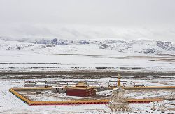 冬季的色達,常常被皚皚白雪覆蓋,民居、帳篷、寺院、經幡、牦牛點綴期間,美麗迷人。