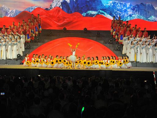 5月29日晚,一臺由中共瀘定縣委、瀘定縣人民政府主辦,四川師范大學承辦的瀘定縣紀念紅軍飛奪瀘定橋勝利80周年暨川藏公路開工65周年大型文藝晚會《永遠的豐碑》在瀘定縣瀘定橋廣場震撼上演,200多名演職人員參與演出,萬余人現(xiàn)場觀看。