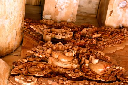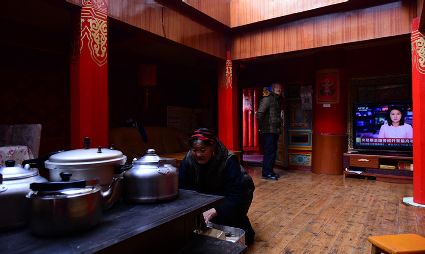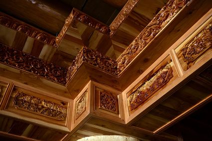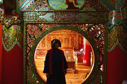道孚民居的精華在其內(nèi)部,木材是其唯一的內(nèi)部裝飾材料,而裝飾,是一項(xiàng)繁瑣得曠日持久的藝術(shù)勞作,往往建房只需一兩個(gè)月,內(nèi)部裝飾則要幾年甚至幾十年。民間建筑藝術(shù)家們沉醉在細(xì)致入微的勞作里,讓每一個(gè)圖案都盈溢一份心底的吉祥,讓每一筆描摹都傳遞一份動(dòng)人的傳說。房間四壁、房門和梁柱上一般都繪滿了精致典型的藏式壁畫,窗上分別雕刻著龍、鳳、仙鶴、麒麟等吉祥圖案。每間屋的大門上都鑲嵌醒目的兩個(gè)獅頭大銅環(huán),凸顯了與之相融的漢文化的特點(diǎn)。置身其間,色彩斑斕中,身邊盡是龍飛鳳舞,鶴翔麟躍。繽紛中細(xì)端詳,真是藏民族藝術(shù)的天堂!