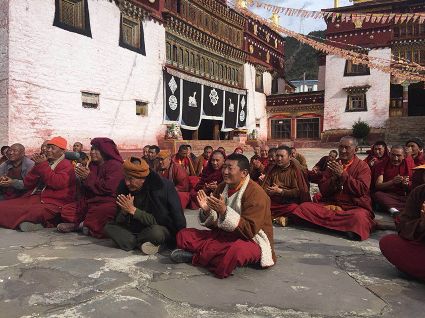 當宣講組一行來到郭沙寺時,寺廟僧人們早已迫不及待的等候在寺廟外?!奥犝f你們今天要來,我們?nèi)律舷露己芨吲d、很期待?!彼聫R堪布甲它激動地說。