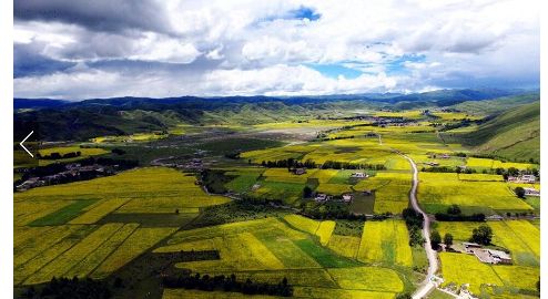 七月的川西高原是一年當(dāng)中最美的季節(jié)。甘孜州雅江縣祝桑鄉(xiāng)境內(nèi)、省道303道孚縣境內(nèi),漫山遍野的油菜花,一朵朵,一簇簇,一片片,仿佛一片金色的海洋。微風(fēng)拂過,綠葉上的菜花隨風(fēng)搖曳,宛若千層波浪涌動。藍(lán)天白云下,金色的菜花光彩奪目,花香四溢,蜜蜂、蝴蝶在花朵上翩翩起舞,你追我趕,好一幅世外田園的高原風(fēng)光,猶如一幅巨幅油畫鋪在川西大地上。