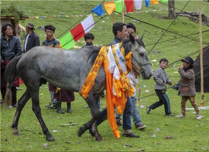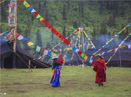 夏天是草原最美的季節(jié),道孚縣玉科草原在這個(gè)季節(jié)里正舉辦久負(fù)盛名的賽馬活動(dòng)。五顏六色的彩帶飄舞在牛毛大帳篷周圍,喜慶氣氛四處洋溢。來(lái)自遠(yuǎn)近牧區(qū)的親屬也專程趕來(lái)玉科草原訪親會(huì)友,參與賽馬角逐,濃郁的民族盛會(huì)令人耳目一新。