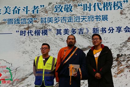 分享會(huì)的座位上,精美禮品袋里裝放著今天的“主角”——新書《雪線信使——“時(shí)代楷模”其美多吉》。翻開書本,“他是流浪地球上的康巴漢子”“他是圣潔甘孜的大愛之人”“他是絨麥峨扎的忠誠(chéng)信使”的句子映入眼簾。